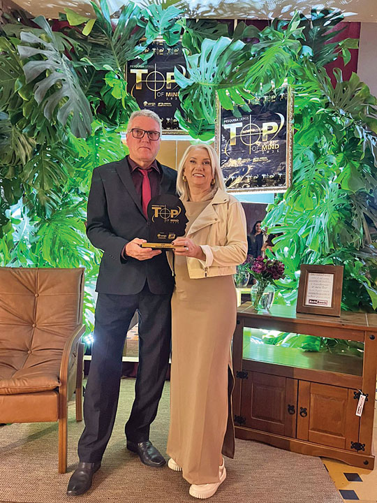 Fernando e Amélia Cerentini recebendo o troféu Top of Mind