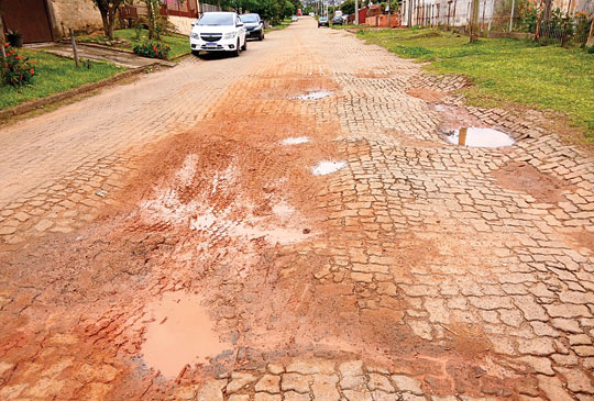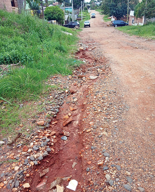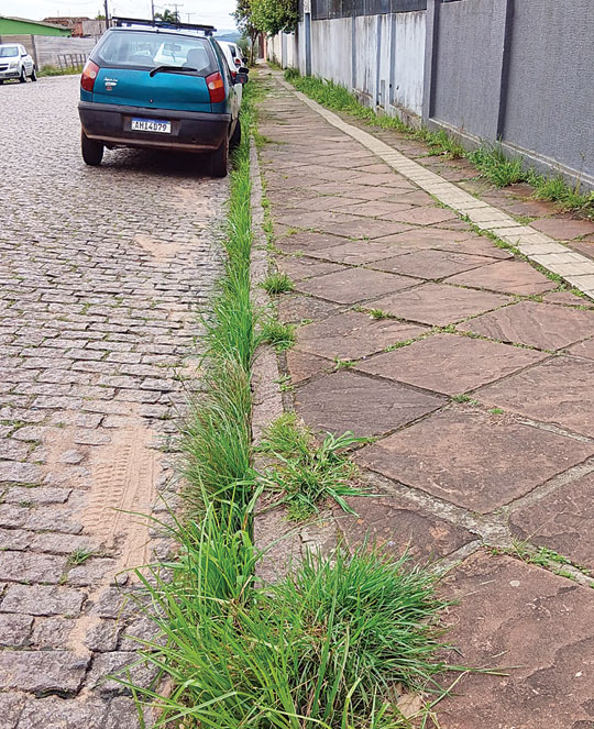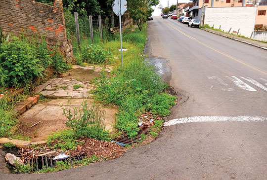 O colorido das flores da primavera contrasta com o cenário de abandono de ruas cheias de buracos e parte delas tomadas pela vegetação, o que evidencia o descuido da Secretaria Municipal de Infraestrutura Urbana em Cachoeira do Sul. O contraste entre a estação da vida e o abandono se agravou com a chegada do período chuvoso e dias mais quentes, o que acelera o crescimento do brejo.