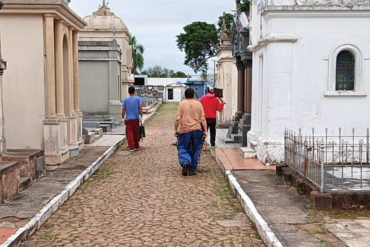 Limpeza: três trabalhadores atuam no Cemitério Municipal