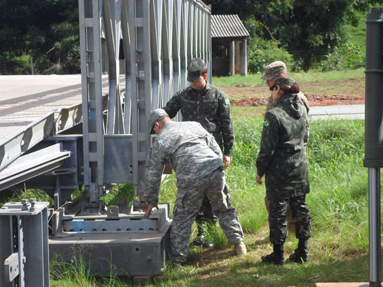 Quatro militares do Exército dos Estados Unidos participam nesta semana de um intercâmbio de montagem de pontes no 3º Batalhão Engenharia de Combate. Os majores James Andrews e Clint Small, o capitão Jerry Rodriguez e o sargento Jose Flores permanecerão até sexta-feira na unidade para aprender as técnicas empregadas pelos militares brasileiros e repassar os ensinamentos de quem tem experiência em montagem de equipamentos durante guerras.